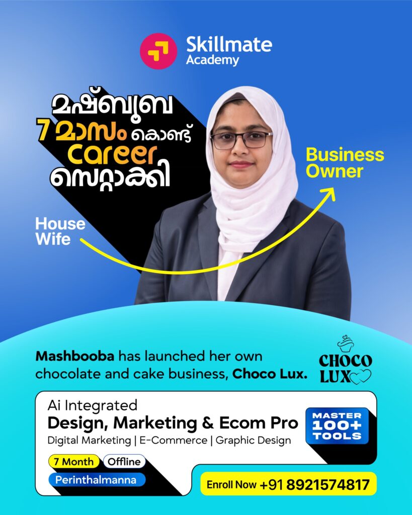 Skillmate Academy is committed to a real-world learning approach and a passion-driven, practical digital marketing course. Through the latest tools, a supportive environment, and experienced trainers the students acquire job-ready skills. Awarded as the Best Digital Marketing Institute in Malappuram, Skillmate Academy sets you up for permanent success in the changing digital marketing landscape.